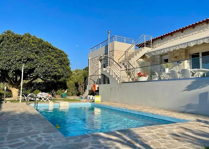 Willa oferuje wyposażony aneks kuchenny, urządzenie do parzenia kawy/herbaty. W kuchni znajdują się czajnik elektryczny, lodówka i piekarnik. Najbliższe lotnisko to Nikos Kazantzakis, położone w 80 km od willi. Na miejscu znajduje się sezonowy basen zewnętrzny, a także miejsce na piknik i ogród.